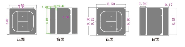 6868、8585D系列是深紫外线UVC LED,采用四颗芯片组合封装,高功率发射,发光角度分别有30°、60°